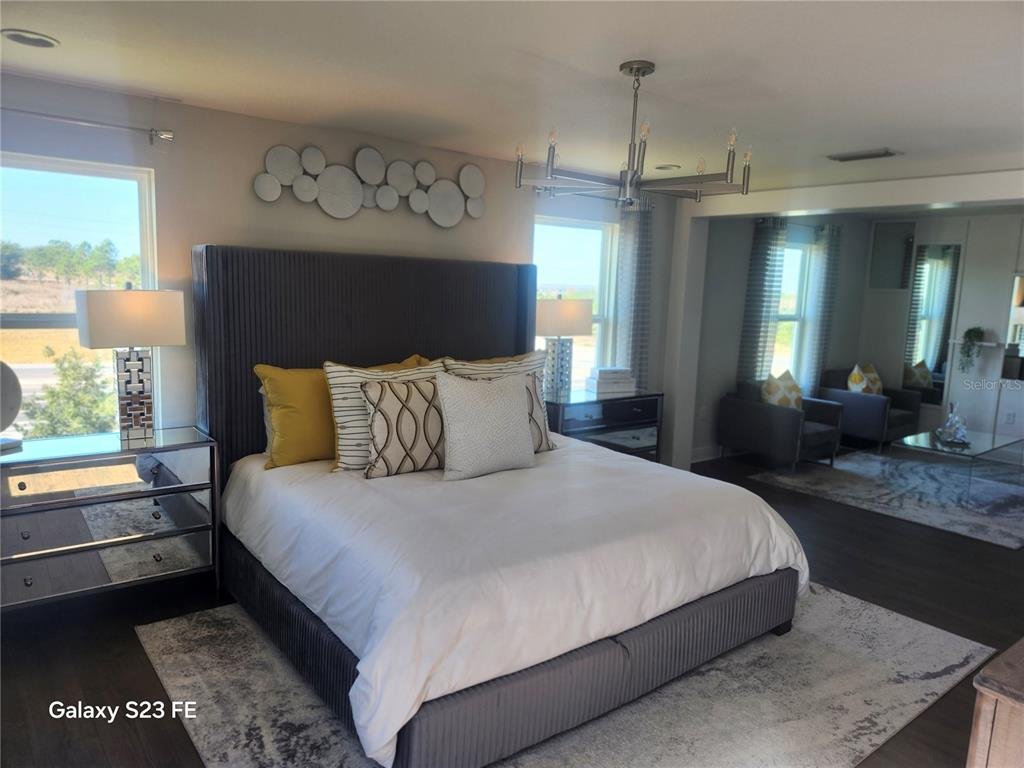 A suíte principal serve como um refúgio relaxante, com uma área de estar perfeita para relaxar. O banheiro da suíte inclui um grande closet, pia dupla e chuveiro.